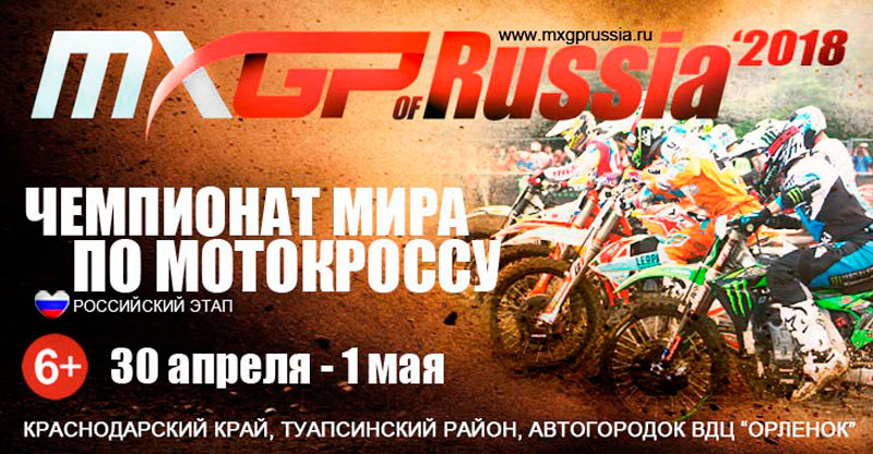 «Чемпионат мира по мотокроссу MXGP – ведущая гоночная серия, которая ежегодно проводится в десятках стран мира и собирает многомиллионную аудиторию болельщиков. Российский этап станет шестым в календаре спортивного сезона 2018 года, к нам приедут звёзды мотокросса и их команды более чем из 40 стран мира. Сейчас идёт активная подготовка трассы и спортсменов. Наши российские гонщики тренируются в усиленном режиме», – прокомментировал директор «Орлёнка», Президент Федераций мотоциклетного спорта России и Краснодарского края Александр Джеус.