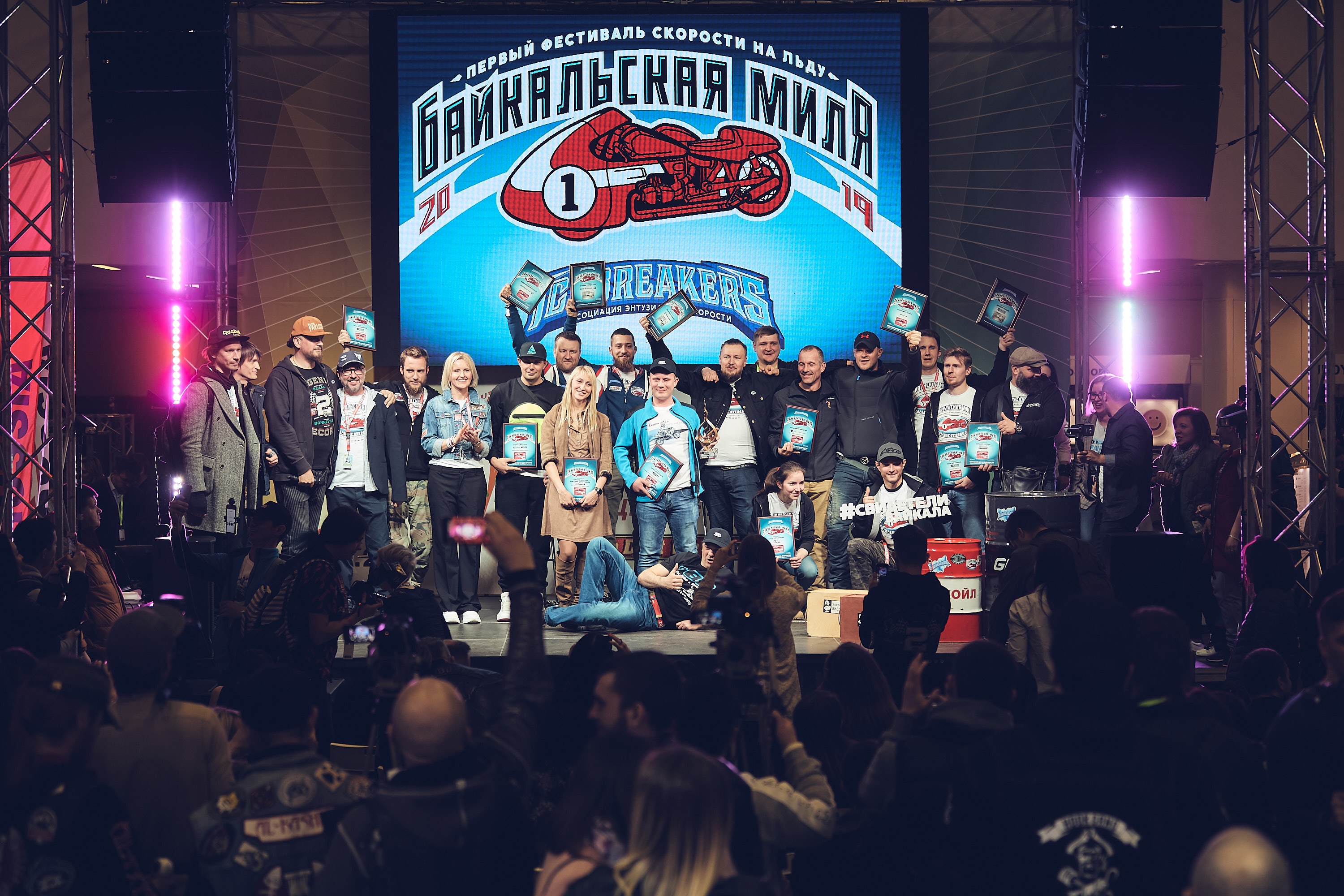 Было на что посмотреть и за пределами павильонов. Прямо на главной площади "Экспоцентра" разместилась трасса для первых в России соревнований по флэт-треку "Motul in Dust We Trust". По небольшому овальному треку, посыпанному скользкой гранитной крошкой, два дня ездили гонщики самого разного уровня, от чемпионов страны до любителей в джинсах. Техника соревновалась самая разная. Больше всего было супермото, но были скутеры, круизеры, электро-мотоциклы и даже два BMW R 35 40-х годов выпуска. В параллельной спортивной программе о рекордах скорости рассказали организаторы фестиваля "Байкальская миля", а рекордсмены получили официальные подтверждения своих достижений. Чемпионат RSBK презентовал календарь 2019 года и рассказал о планах на предстоящий сезон. На главной сцене выступили с рассказами мотопутешественники, лично пообщаться с ними можно было и на втором этаже главного павильона, где разместилась туристическая экспозиция. Также разнообразили "Мотовесну" спортсмены из фитнес-клуба Lomov Gym, гоночные команды, производители мелкосерийных и штучных аксессуаров.