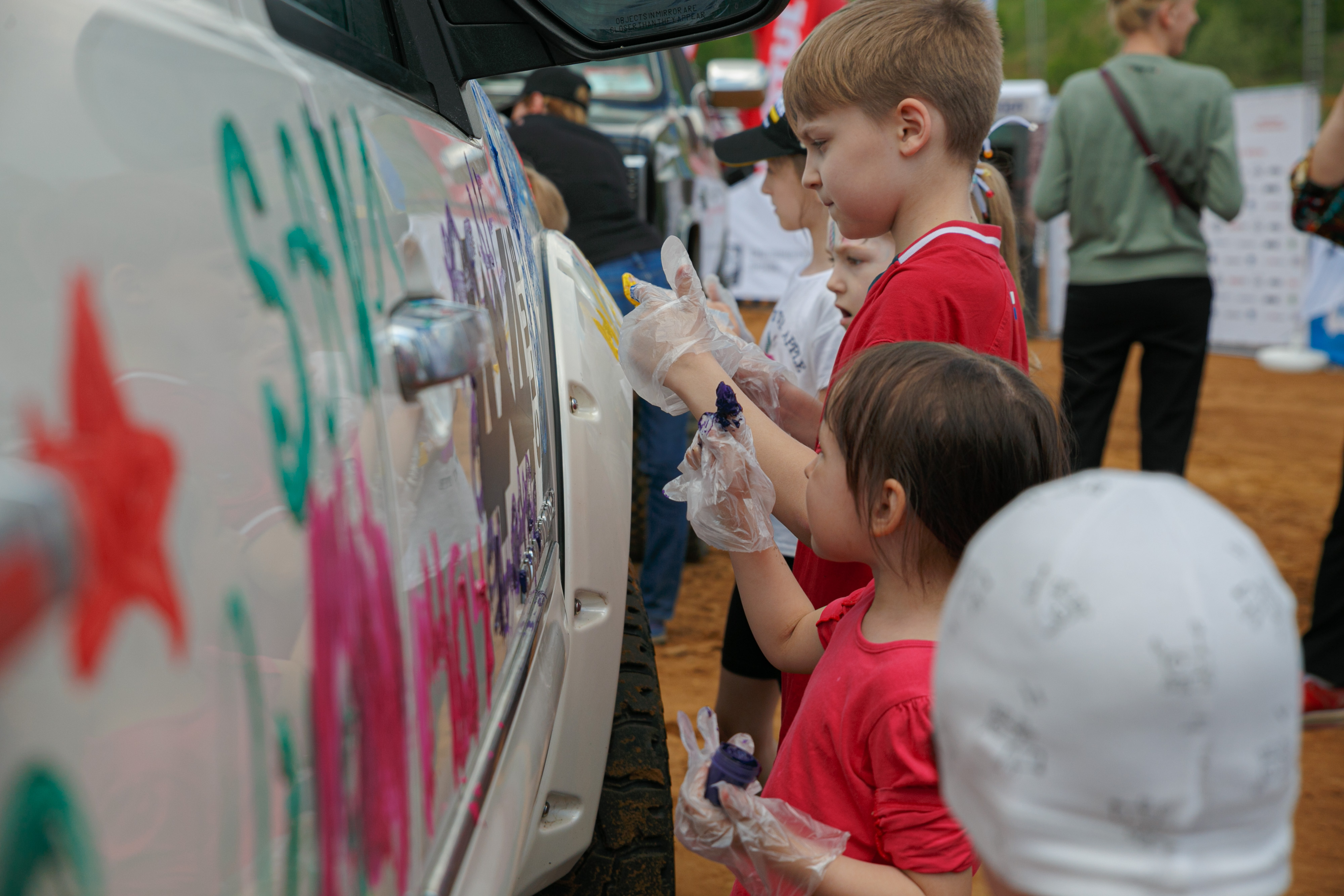 На главной сцене мужчины соревновались в силовых конкурсах – один из которых предполагал поднять максимальное количество раз пятилитровую канистру моторного масла MATUL (https://www.motul.com/ru/ru). Другие мерялись мощностями своих автомобилей, а также меняли на скорость колеса, а дети раскрашивали красками белый Chevrolet Avalance организаторов.