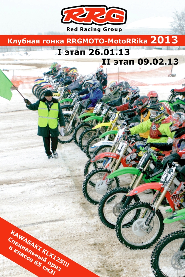 Мотошкола RRGMOTO приглашает всех любителей мотокросса на традиционные соревнования – клубную гонку, которая пройдет в январе-феврале и будет состоять из двух этапов: 26 января и 9 февраля 2013 г.
