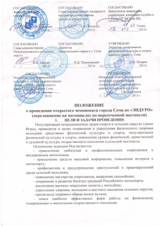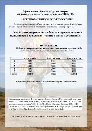 Положение о проведении открытого чемпионата города Сочи по «ЭНДУРО»