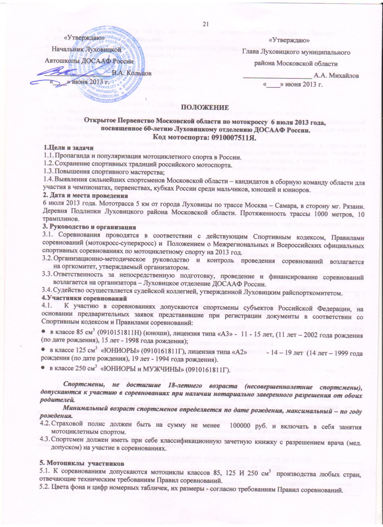 Открытое первенство Московской области по мотокроссу 6 июля 2013 Луховицы 06.07.2013 Ronald Jeremy Hyatt 6 июля мотокросс в Луховицах Трасса находиться д. подлипки по трассе Москва- Рязань М- 5 ,со стороны Москвы после города Луховиц через 5 км указатель на лево ГОЛОВАЧЁВО и прямо перд ЖД переездом на лево там будет указатель .а в принципе и с дороге видно. КЛАССЫ 85,-125.-250 Комментарии Комментарии к этой статье запрещены.
