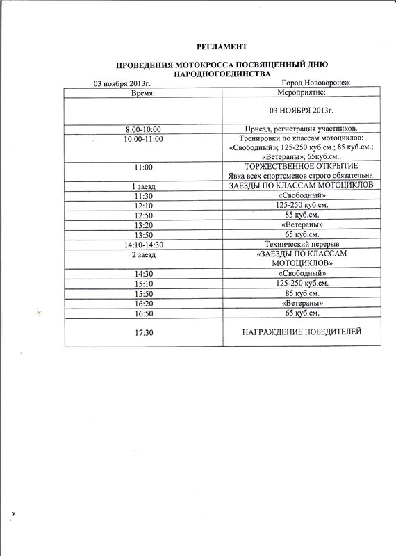МОТОКРОСС в Нововоронеже 03.11.2013 г. 03.11.2013 Ronald Jeremy Hyatt Состоится Мотокросс в Нововоронеже 3 ноября 2013.Всех мотогонов ждем на трассе в районе Полубяновки.контактный телефон 8-960-12-000-34 Сергей. Комментарии Комментарии к этой статье запрещены.