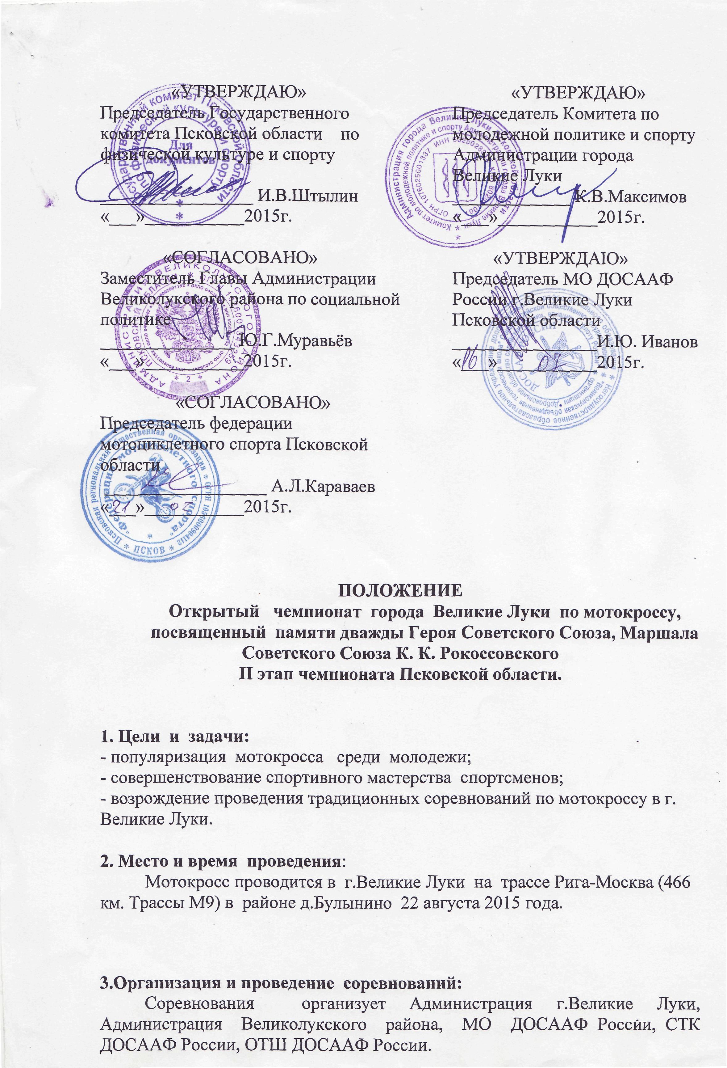 22 августа - Мотокросс в г.Великие Луки 22.08.2015 Открытый чемпионат города Великие Луки по мотокроссу, посвященный памяти дважды Героя Советского Союза, Маршала Советского Союза К. К. Рокоссовского. Комментарии Комментарии к этой статье запрещены.