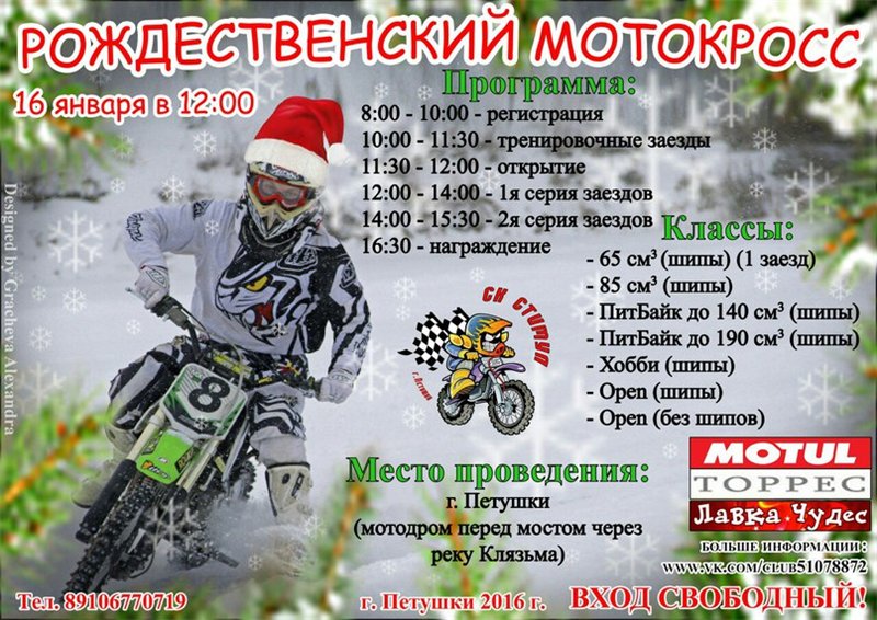 16 января 2016 г. в городе Петушки (Владимирская обл.) на мотодроме СК "СТИМУЛ" пройдёт "Рождественский мотокросс".