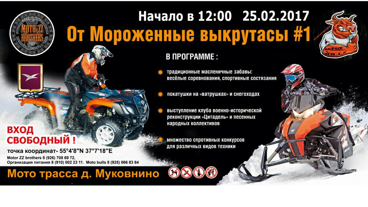 Широкую Масленицу мы приглашаем всех вас отметить 25 февраля, в субботу, в деревне Муковнино! Не спешите кривиться и браниться, дескать, «шо за глушь» и «нафиг надо». Ведь мы решили не ограничиваться лишь поглощением блинов, и подготовили для вас развлекательную программу в лучших традициях MOTOrZZ Brothers.