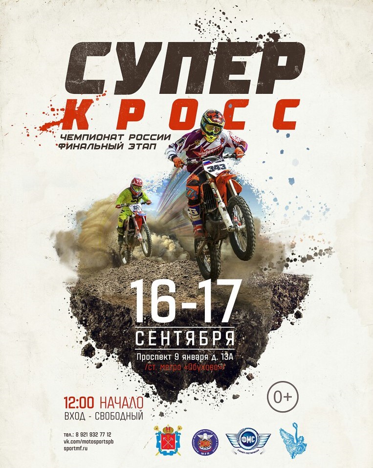 16-17 сентября в Санкт-Петербурге седьмой раз пройдут финалы Чемпионата и Первенства России по суперкроссу. 16.09.2017 SLON г. Санкт-Петербургтрасса «Мотор», пр. 9 января, 13 Аст. метро: «Обухово» Комментарии Комментарии к этой статье запрещены.