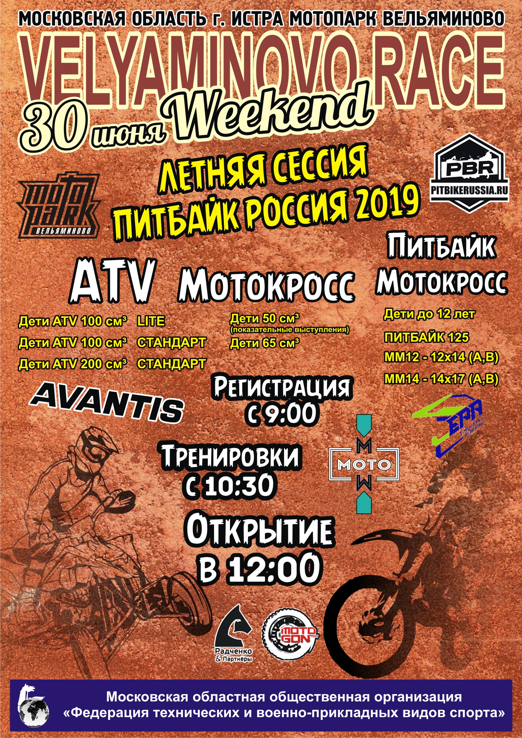 2.1. Место проведение: МОСКОВСКАЯ ОБЛАСТЬ г. ИСТРА МОТОПАРК ВЕЛЬЯМИНОВО Время проведения: 30 июня 2019 г.