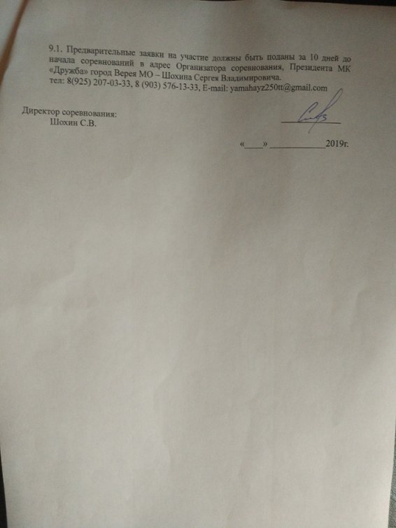 мотокросс г.Верея, перенесен на 24 августа. 15.08.2019 SLON мотокросс г.Верея, перенесен на 24 августа. 24 августа мотокросс г.Верея, посвященный памяти ветерана группы А полковника Торшина Ю.Н. Подробности будут чуть позже. Организатор соревнований Шохин Сергей, тел 925 2070333. Комментарии Комментарии к этой статье запрещены.