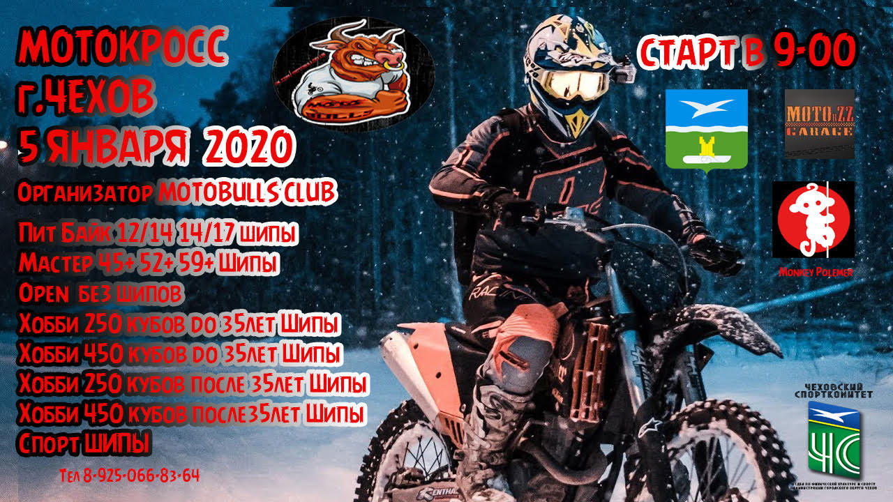 5 ЯНВАРЯ 2020г МОТОКРОСС ЧЕХОВ 05.01.2020 SLON 5 ЯНВАРЯ 2020г МОТОКРОСС ЧЕХОВ 5 ЯНВАРЯ 2020г МОТОКРОСС ЧЕХОВКлассыПит Байк 12/14 14/17 шипыМастер 45+ 52+ 59+ ШипыOpen без шиповХобби 250 кубов до 35лет ШипыХобби 450 кубов до 35лет ШипыХобби 250 кубов после 35лет ШипыХобби 450 кубов после35лет ШипыСпорт ШИПЫ Комментарии Комментарии к этой статье запрещены.