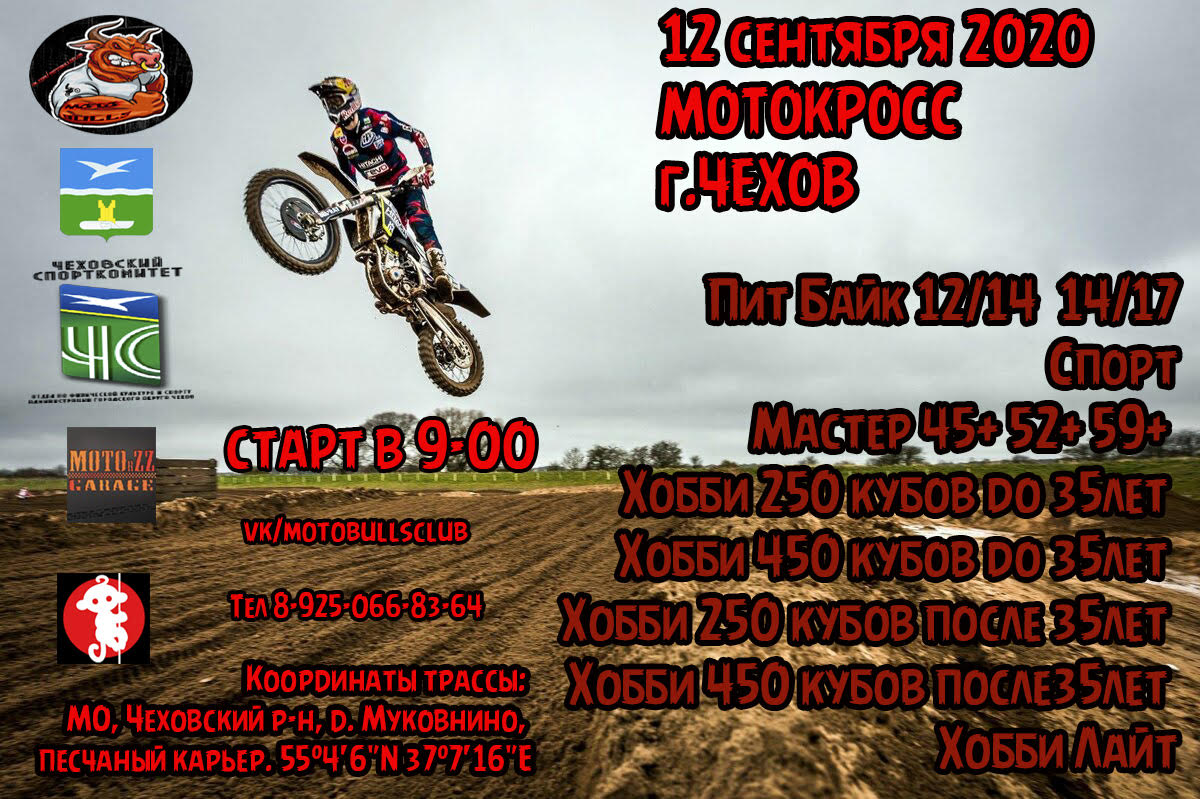 С радостью сообщаем что 12 сентября 2020г в Чехове состоится долгожданный МОТОКРОСС.