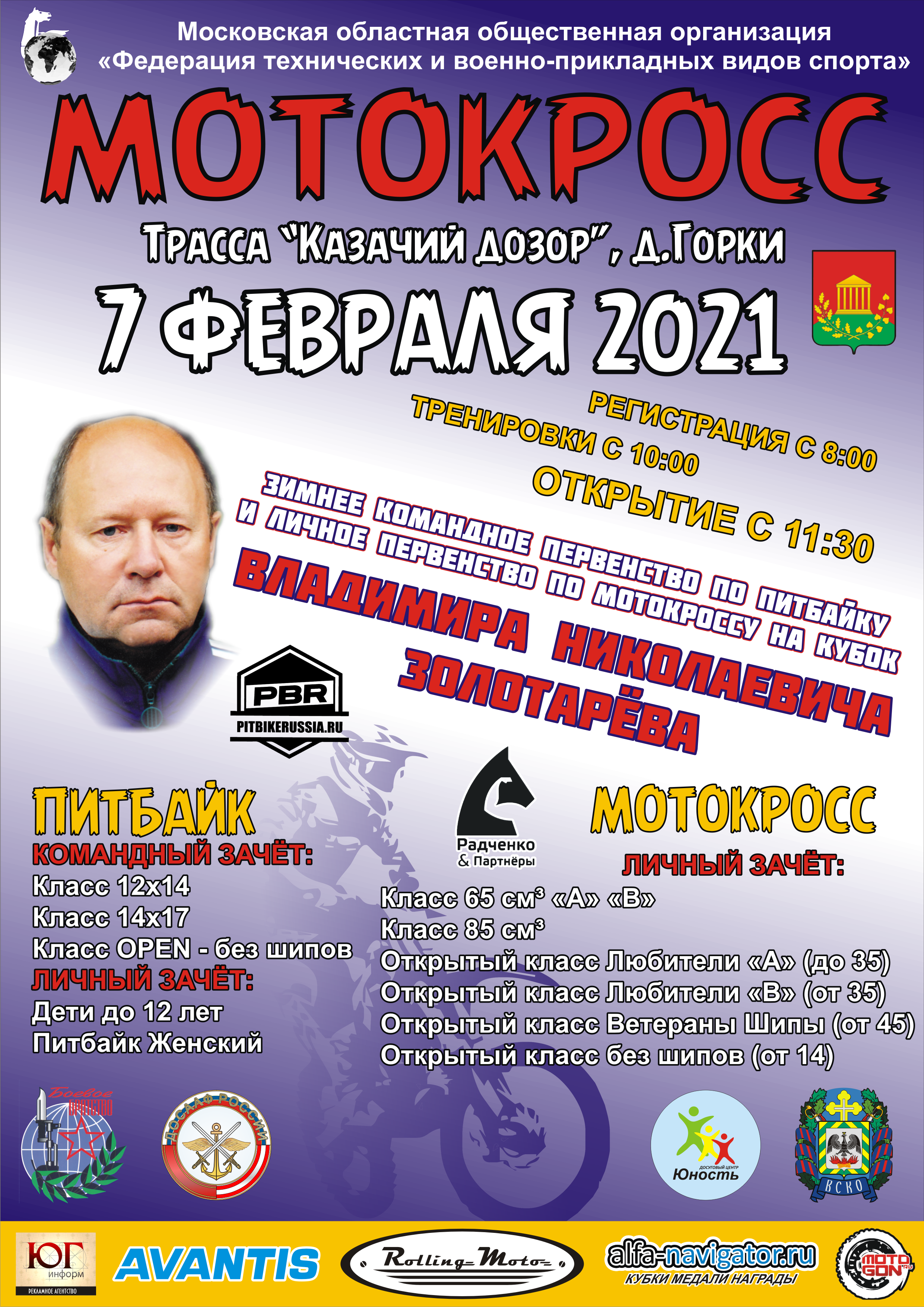 проведения Зимнего Командного Первенства по питбайку и Личного Первенства по мотокроссу на Кубок Владимира Николаевича Золотарева